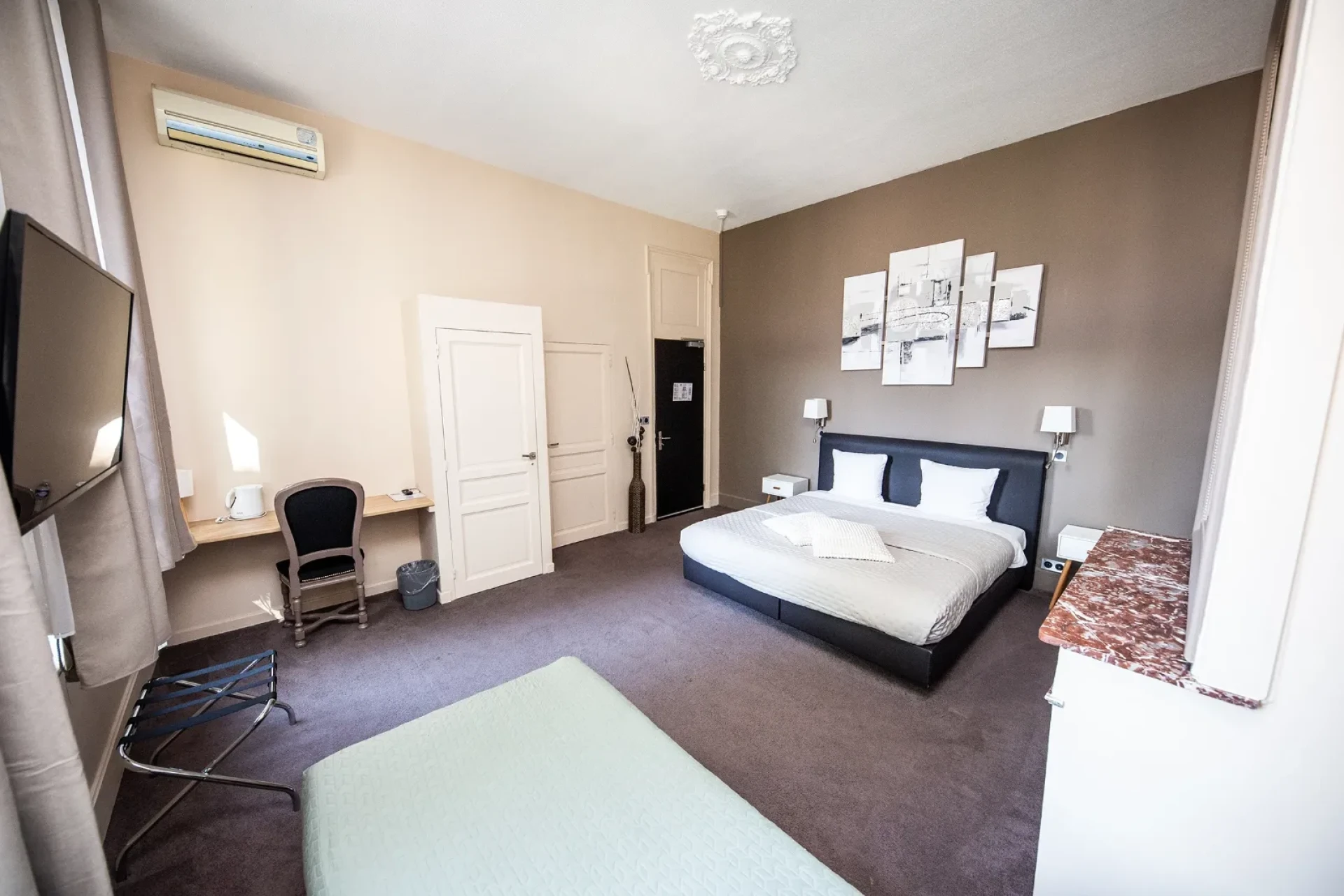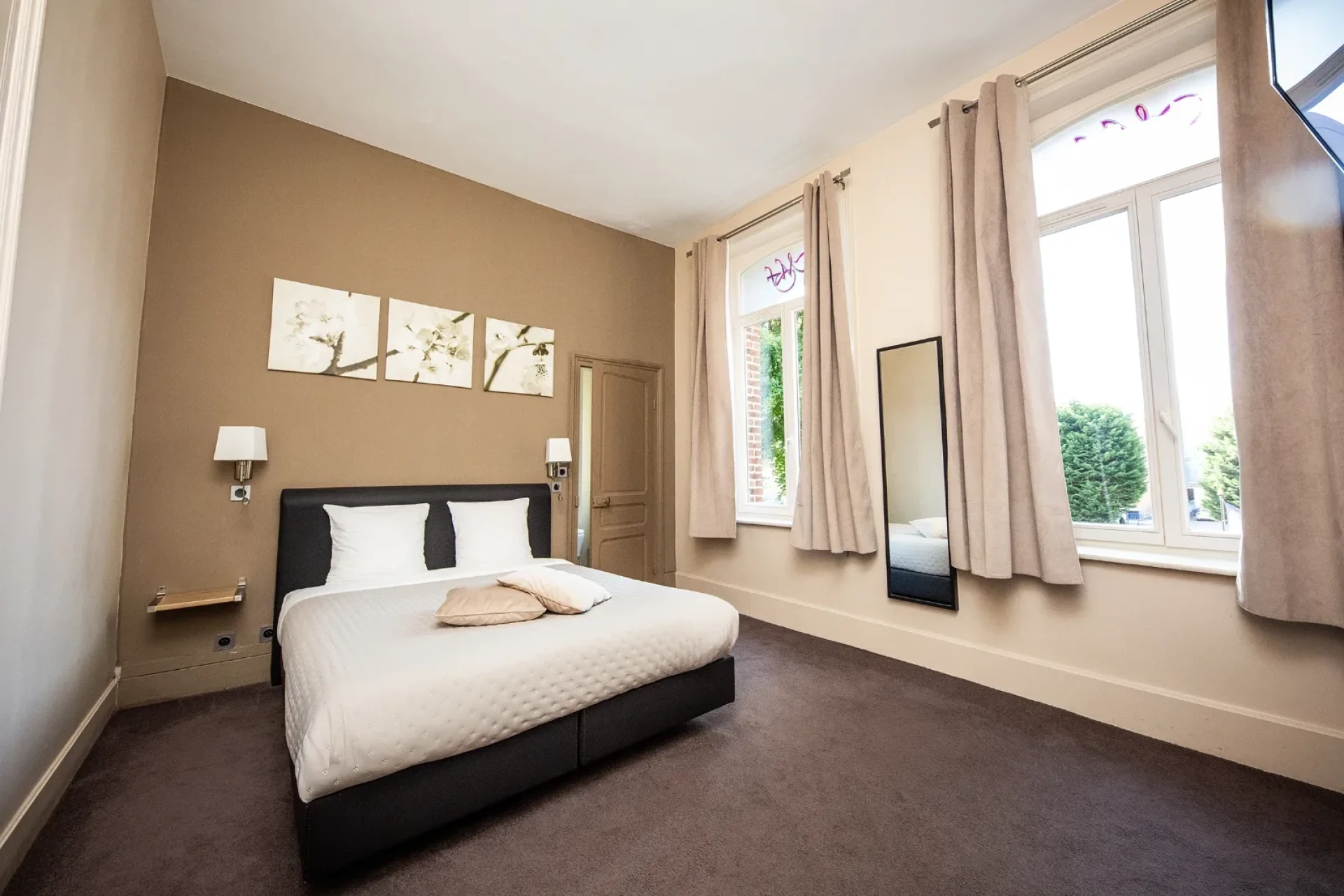 Toutes nos chambres d'hôtel près de Douai sont équipées de : Climatisation pour votre confort en toute saison, Écran plasma moderne, Literie de qualité haut de gamme sélectionnée avec exigence, Décoration soignée.
